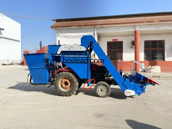 Boslead Corn Harvester is to be operated when being hung clenching the front bracing of a four-wheel tractor and driven by rear power take-off (PTO). It is applicable to ear plucking and straw chopping in corn fields when the ears of corns are ripe. This machine is small in size, high in efficiency, light in weight, easy to operate and can lead to less loss of ears.