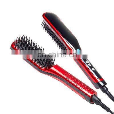 Private label wholesales hair straightener brush LCD display Ionic Electric hair comb