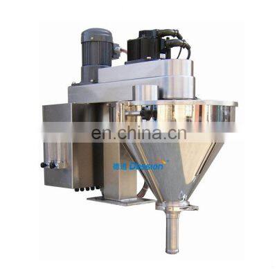 powder filling screw measuring machine auger fillerProduct DescriptionThis type can do measuring and filling work. Due to the special professional design, it is suitable for the fluidic or low-fluidity materials, like milk powder, Albumen powder, rice powder, coffee powder, solid drink, condiment, white sugar, dextrose, food additive, fodder, pharmaceuticals, agriculture pesticide, and so on. Auger Filler Main Features:1. The surface of whole machine is made by stainless steel material except of motor. Knock down transparent hopper, which could be washed without tools. 2.Servo motor driving screw is characteristics of no easy abrasion, high-precision orientation, setup rotate speed, stable performance 3. Include hand wheel of adjustable height. 4. Dust- collector set on dust material situation to absorb dust spout out.5. Fit for lots of material range from fine-powder to coarse-granule, if change the screw attachment. 6. PLC control system is characteristics of stable working, anti-jamming, high precise weighing. Touch screen controller show clearly working status, operation sign, fault state and production statistics. Operation is simple and intuitionistic. Save the parameter of each product to later use.10 recipes of magistral fomula save at the most. Techinical Parameter:ItemSmall auger fillerMiddle auger fillerLarge auger fillerFilling range10-300g50-1000g500-5000gPacking speedMax 60 bags/minMax 50 bags/minMax 40 bags/minWeight accuary±0.3-1.5%±0.3-1.5%±0.3-1.5%Power380V 1KW380V 2.5KW380V 3KWDimensionL510*W585*H930L690*W1030*H1100L600*W1250*H1800Weight100KG150KG220KGMeasure typescrew rotary fillingscrew rotary fillingscrew rotary fillingDetailed Images:Match with Powder packing machine:Combined parts:1,Screwing elevator;2,auger filler;3,bagger;4,finished product conveyor Application It is suitable for the fluidic or low-fluidity materials, like milk powder, Albumen powder, rice powder, coffee powder, solid drink, condiment, white sugar, dextrose, food additive, fodder, pharmaceuticals, agriculture pesticide, and so on.Sample Photo: Company InformationDession is a leading manufacturer of Rotary pillow packaging macine, Vertical powder / granules / liquid / Sauce packaging machine, Automatic Feeding line, flowing packing machine and supporting facilities since 2005. Dession has successfully developed more than 80 kinds of packaging machines and related equipment, widely suitable for food, medicine, chemicals, Industry accessories, hardware and so on. Dession workshop covers almost 10,000 square meters, around 120 labors including 8 engineers, 4 designers, Researching team 16 members, 5 core sales team with more than 20 salesman.QUALITY GUARANTEECE Certificate with European StandardHigh concentrating on Innovation of the Packaging Machine Many cooperation customers visit the company During last 10 years, Dession has developed more than 30 partners all over the world , Dession automatic packaging machine has been shipped to many countries and area such as America, Brazil, Russia, British, Germany, India, Thailand, Malaysia, Vietnam and so on. Shipping&ServicesFor packingDession will clearing every parts, packed firstly with the film, then put in the plywood case ( Fumigation free)For shippingwe can offer you the freight charges, no matter by sea, by air or by express, also you can designated the agent for shipping. What can we offer ? -MADE TO MEASURE SOLUTIONS; -TECHNICAL ADVICE CONCERNING PACKAGING; - REMOTE TRAINING AND SUPPORT; - DESPATCH OF SPARE IN THE SORTEST TIME.AFTER-SALE SERVICE1. Manules/Videos of machine installation, adjusting, setting, maintenance are available for you. 2. If any problems happend and you can not find out the solutions, Telecom or Online face to face communication available 24 hours;3. Dession engineers & technician are available send to your countries for services if you agree pay the expenditure;4. Warranty: 2 years (Electric accessories ) and free life time maintenance (Excluding freight) ;5. Dession has an independent team for after-sale service. any emermancy pleas call the saleman or our after-sale's manager Mr. Liu : +86 133 8050 5668 FAQ For any Questions1. Q : Can your machine meet our needs well, how to choose the proper settings ? A : Dear, before quoting, please kindly consult us and providing: The packaging product name; Packaging bag size (length/width), Or the weight of each packaging bag; Packing speed; Bag types showing above or your own design;it will be more easier for us to recommend the most suitable packing machine for you to make your cost to the minimum. 2. Q : Do you have manual or operation video for us to know more about the machine ? A : Yes, not only manual or operation video, 3D drawing also available to make as per your design, also the video we can make of testing the material from our packaging machine if your packing goods easier for us to find from our local market. 3. Q : How can I trust you for the first time business ? A : Please note our above business license and certificate. And if you don't trust us, then we can use Alibaba Trade Assurance service. it will protect your money during the whole stage of transaction. 4. Q : Can you explain me the whole transaction process ? A :Both sides reached cooperation intention- ---- Signed the Contract ---- Arrange the deposit to factory ---- Factory arrange production ---- Testing&detecting the machine before shipping ---- Inspection by customer or third agent or through online ---- Arrange the balance payment ---- Confirm the shipping details then delivery ---- Guild customer setting after machine arrived ---- Follow up and feedback with customer timely 5. Q: Will you provides the door to door service? A: Yes. Please offer us your final destination, we will check with our agent to see if it available, and most of the area is ok for us to clearing and sending in your countries.Send us your requirement below for Free Technical Proposal now !The pictures demonstrating in this p