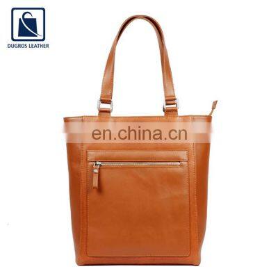 Matching Stitching and Cotton Lining Material Zip Closure Type Best Selling Genuine Leather Shopper Bag for Women