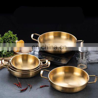 Recommend ProductsContact Info.Products DescriptionProduct NameKorean Ramen Pot Thick Stainless Steel Milk Egg Soup Cooking Pot Home Instant Noodle Seafood Troop Pot Kitchen CookwareItem NumberCW005Place of OriginJiangmen CityFeatures1. Commercial grade stainless steel, durable, easy to clean, non-toxic, non-allergenic and safe for cooking.2. With an ergonomic stainless steel handle, it can be transported and cooked comfortably. Provide stylish and modern design, withmirror polished exterior and matte polished interior, adding elegance.3. The thick bottom of the pot is stable and can be directly heated on the induction cooker.ProductProduct Name: Seafood PotMaterial: Stainless steelSize: 18/20/22cm/24cm/26cmColor: gold, silverApplication: induction cooker, gas stove, etc.Product packagingWhy Choose UsOur PartnersFAQQ1: Are you manufacturer?A1: We are both Manufacturer and Trade company. You can get the best service and the best price from us.Q2: What is your MOQ? Is a small order OK?A2: Our MOQ is flexible. You can order as much as you want. Follow your need.Q3: How about the samples?A3: We can arrange the samples to you if you need it.Q4: OEM or ODM is available?A4: Yes. We provide both OEM & ODM.Q5: Can I print the LOGO on the carton box?A5: Sure. We will send the design document of carton box to you for customization. The MOQ of the customized carton box is 200.Q6: How long is the delivery time usually?A6: We usually have enough stock. Within 200 pieces can be shipped within 1-3 days.Q7: How about the shipping cost?A7: The size and weight of each product are different, so you can contact us at any time to help you calculate the shipping cost.