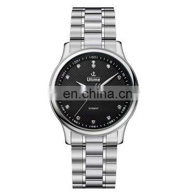 Utime Charming Automatic Men's Watch Calendar Date Display Swarovski Crystal Index Japanese Automatic Movement U0018GFQA:1. What's your best price for this watch?A: We will quote you best price according to your quantity, so when you making an inquiry, please let us know the quantity you want.2. What's your MOQ? Can I mix styles and colors?A: For watch, MOQ is 500pcs/model for OEM & ODM,Alloy case is 300 pcs/color of our Sinobi Brand ,Stainless steel case 500pcs/model .We can mix colors for you, Usually we don't accept mix styles. But for the first order, and we see your sincerity to cooperate, we will try to accept 300pcs/style,but the unit price will be higher than the unit price of 500pcs.3. What's the delivery time?A:Delivery time Alloy case 25-35 days ; Stainelss steel case 50~55 days after confirmed all details and receipt of deposit.4. Can we print our own logo?A: Yes, we can print logo free for you, we can print your logo and design on the band, dial, buckle, back, case and other place, usually the color of the logo is one color.5.What about the warranty?A: We are very confident in our products, and we pack them very well, so usually you will receive your goods in good condition. But to avoid any subsequent trouble regarding quality issue, we suggest that you check the watches once you receive them, and let us know the details if there is any damaged ones, so that we can deal with it accordingly.6.Do you offer Drop shipping (Blind shipping )?Yes , we offer Drop shipping/Blind shipping,we haven enough experience in drop shipping ,every day we have many watches to send out many countries for Drop shipping.7. Do you do custom watch boxes?Yes, we do custom watch boxes. We can follow your requirement to make the boxes ,or you can select our boxes with your logo, we have many different type watch boxes for you selecting.8. What movement do you usually use in your watches?We usually use Japanese movement ,Swiss movement, and Chinese movement, for example Seiko,Citizen,Miyota,Ronda ,Kingstar we use most.9. What kind of materials do you usually use in your watches’ case?We usually use stainless steel and alloy for case, if you have any special requirement, we can according to your requirement for the case.10.What kind of band do you usually use in your watches ? We usually use genuine leather band , stainless steel band,nylon band, mesh band,PU leather band, silicone band ,and so on.11.What is your packaging?For sample packaging: 1.Normal packaging :Gift box packaging: each watch will be put into a gift box then put into a small yellow carton For OEM/ ODM Products packaging:Normal packaging 1.Each piece will be put into a poly bag;2.20 pieces into a white box;3.10 white boxes into a 39*30*33cm carton; Box packaging1. Each watch will be put into a box;2.100 boxes will be put into a carton; Special packaging: As per your request. **Note: Normal packaging service is free.