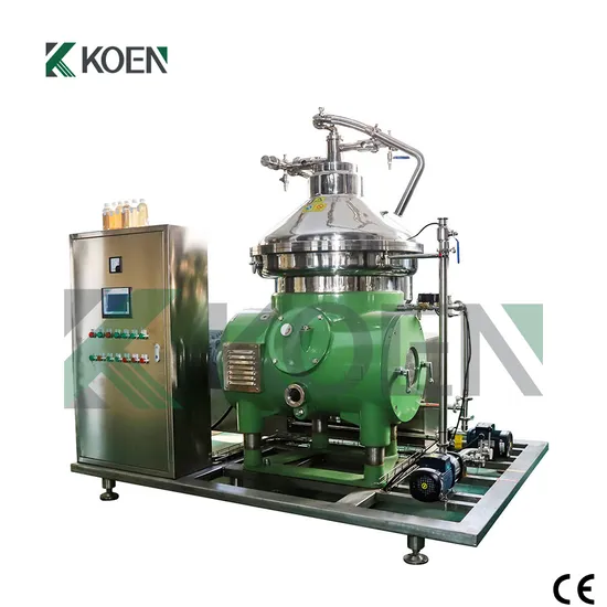 Equipment characteristics: 1.It can separate substances with extremely small density differences.The rotating drum of the disc centrifuge has a high rotational speed and can generate a strong centrifugal force with a high separation factor. This enables it to quickly and effectively separate substances with extremely small density differences. For mixtures that are difficult to separate by conventional filtration or sedimentation methods, such as emulsions and fine particle suspensions, it has excellent separation effects.2.High production efficiency. Due to its efficient separation ability, the residence time of materials in the disc centrifuge is very short and the production efficiency is high.3.Good clarification effect.The disc centrifuge has a precise disc design. The discs inside the disc centrifuge have a very small spacing and are arranged in a conical shape, forming numerous narrow channels. When materials enter the centrifuge, under the action of centrifugal force, solid particles or impurities will quickly move along the lower surface of the discs to the edge of the rotating drum and deposit there. The clarified liquid can smoothly flow through the channels between the discs to the center of the rotating drum, thus realizing efficient separation of solids and liquids and obtaining highly clarified liquid.4.It can continuously and automatically discharge slag. It can continuously discharge the solid impurities deposited on the edge of the rotating drum without stopping the machine.5.Durable and Robust Construction:Crafted from premium 304/316L stainless steel and Duplex Steel, this centrifuge is built to withstand the rigors of industrial use, ensuring long-lasting durability and dependability.6.Comprehensive after-sales support:This product comes with a 1-year warranty on core components (including PLC, bearing, and motor) and a 1-year warranty for the entire machinery, ensuring customers receive timely assistance in addressing any issues that may arise during use.