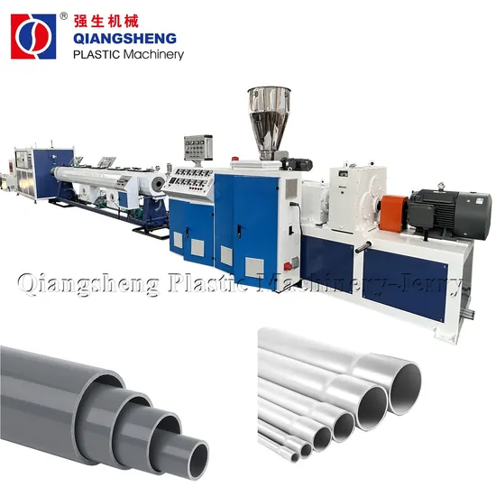- PVC drainage water pipe manufacturing making machinery extruder machine is mainly used in the production of Agricultural water supply & water discharge systems, architectural water supply & discharge systems, wire laying systems, etc. purposes. - The unit consists of a Conical (Parallel) double screw extruder-PVC pipe mold-Vacuum forming tank-Haul-off machine-Cutting machine-Stacker/Belling machine. - the line can be equipped with a Comptroller thickening instrument or computer ink-jet printer, etc. to achieve the production and manufacture of high-grade tubing.