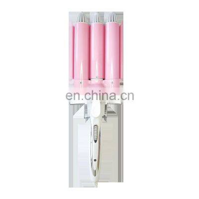 RIWA Home and Salon Use Three barrels ceramic Hair Curler Electrical 3 barrel Wave Wand Curling Iron pink