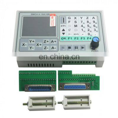 50KHZ CNC 4 Axis Offline Controller Motion Control Board Carving Engraving Machine Control System Card SMC4-4-16A16B Product Description Advantage:- Parameter setting : Can set, process and operation various control parameters, to reach the optimal effect.- Operate by Hand: Can control your systom by hand in this Motion controller- Program managment: This controller can built,delete,modify,read, save,automatic processing,continuous,pause and other functions.Technical Information:- The smallest date unite: 0.0001mm- The biggest date unite: ± 99999.999mm- The highest frequency of pulse output: 50KHz (The three axises can reach 50KHZ at the same time)- Control axis: 4 axis (X, Y, Z, A axis)Main features:- Parameter settings: For processing, control parameters related to the operation- Manual operation: can be achieved manually, jog back to the program zero, back to mechanical zero, cleared coordinate operations.- Program management: program can create, delete, modify, read, save, save, automatic processing, continuous, and pause.- External Manual: Manually define a variety of external functions to facilitate the use of- Freedom to select the input function: the limited input port can achieve a variety of user needsSystem components- 4 Axis Offline Controller / Motion Control /CNC system consists of the following components:- High-performance, high-speed 32-bit ARM CPU- Liquid crystal display (resolution: 320 × 240)- Input / Output (10MA 16 opto-isolated inputs and 16 opto-isolated output pull-down tank flow 500MA)- Users machining program memory can be implemented in any storage TF cardTechnical indicators:- The smallest unit of data 0.0001mm- The maximum data size ± 99999.999mm- Maximum pulse output frequency 50KHz (-axis simultaneous 50KHZ)- Control axis 4 axis (X, Y, Z, A)- 4-axis linkage axis and has a micro-multi-multi-axis interpolation control line forward- Appearance and Panel: Dimensions: length 165, width 101, height 50Package List:- 1 x LCD Controller board- 1 x IO Output connector- 1 x IO Input connector- 1 x TF card Detail Photo FAQ FAQ Q1. Can I have a sample order?A: Yes, we welcome sample order to test and check quality. Q2. What about the lead time?A: Samples arrived often need 3-5 days. Q3. Do you have any MOQ (minimum order quality)limit?A: Low MOQ, 1pc for sample checking is available. Q4. How do you ship the goods and how long does it take to arrive?A: We often ship by DHL, UPS, FedEx or TNT. It usually takes 3-5 days to arrive. Airline and sea shipping is also optional. Company Information Company informationTZT has been speciliazing in Business & Industry,Hobbies & Toys,CNC Products and Health care supplies for over 5 years.We committed to enhance customer satisfaction by continually improving the process with a vision of expertise in the field. Aiming to provide high quanlity products and great service for buyer,we are strict on product quanlity control and offer instant communication service.Welcome to contact us!Our Advantages:- Source only the best consumer goods and ensure the highest quality.- Streamline the buying and payment process, and make it as easy as possible.- Help the customers all over the world discover products and manufacturers in China.- The Shortest order processed time and speed delivery