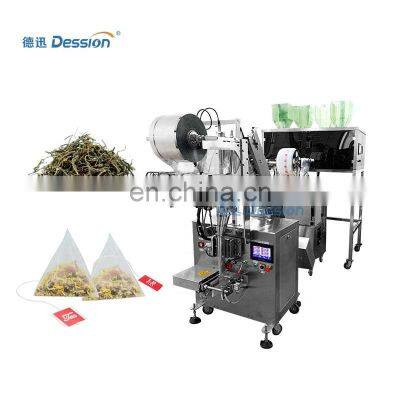 DS-T-NW4 Triangle Nylon Inner And Outer Tea Bag Packing MachineProducts DescriptionDession powder packing machine is suitable for tea . Such as bulk tea, herbal tea, health tea, flower tea and other internal and external bags are disposable packaging.The packaging pouches with drawing line and tag. The process of bag making, measuring, filling, sealing, cutting and counting can be done automatically. 1. All stainless steel cover meets to GMP Standard. 2. Equipped with antipollution and dustproof device. 3. Adjustable measuring cup-adjust the measuring under the case of downtime 4. The function of automatic counting is available for customers to pack. 5. The maximum advantage of this machine is that the feeding structure inside the machine beyond the traditonal feeding form, greatly improve the rates of the threads and tags which make the the rates of threads and pre-print on about 98-99% .6. Minimum sealing temperature variation employs PID temperature, the tolerance is controlled by ± 2%.7.Have gained the European CE certification.NameTea Bag Packing MachineModelDS-T-NW4MeasuringVolumetric cup fillerFilling Range1~10 g/bagPacking Speed30-50 bags/minPacking Roll Width140,160,180mmSealing Length50,60,70,80mmOuter Bag SizeL:90-120mm,W:80-100mmPower220V,50Hz,3.7KWPackaging MaterialPaper/plastic,plastic/plastic,plastic/aluminum/plastic,paper/aluminum/plastic,tea filter paper,thread,tag paper.Electronic ScaleThe weight of the electronic scale is automatically weighed.Inner Bag Making MachineAccording to the width of the inner bag film, the corresponding inner bag of tea is produced.Transfer Chain BucketAutomatically transfer the finished inner bag to the outer bag making machine.Outer Bag Making MachineAccording to the set parameters, make the required tea bag.Recommend ProductsIf this machine can't meet your needs, we can give you more choices.We have a tea grinder, small tea bag packing machine, triangular tea bag machine for you to choose from.Packing & DeliveryPayment1.T/T and Western Union are accepted2.30% deposit before production and 70% balance before shipment3.All banking charges outside China are on buyersShipping1.Upon receipt of payment , delivery date will be in 15-30 working days,2.By Air, by Sea or by Express (DHL etc)3.Shipment cost will depend on the destination, shipment way and the weight of the goodsOur CompanyCertificationsFAQQ1: Customer: How do I find a Packing machine model suitable for my product?1. What kind of product you have.2. The bag/sachet/pouch size ( the length, width).3. The weigh of your product for each bag is sometimes neccessary told(it depends what specific product you have).4. Your requirement for the machines and the bag types.Q2: Customer: How about the delivery time? All our machines are tailor-made because different clients have different requirements, delivery will be within 20 days for the small packing machines.For the large-scale machine, it takes longer. Q3: Customer: Can you offer some video or pictures of the packing machine?Yes, of course. Besides, we can help you to have your products packaging if you are available to send us some of your product and then record a video for you reference. Q4: Customer: How about the after-sales service? ( Buy machine here? Don't Worry! )1. With professional after-sales service team, we can provide you with a satisfied and technical service no matter which country you are in.2. Any videos of packing machine installation, adjusting, setting, maintenance are available for any buyer.3. If you got any problem when using the machine and the videos can not help, our technician will have video chatting with you to fix your problem.4. Warranty : 2 years(Electric accessories) and free life time maintenance.(Notice: In order to save your cost, we offer various video chatting service for you, but if you insist on the service oversea, the travel expense and technician cost will paid by you.)Why Choose Us
