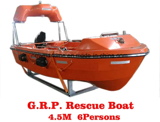 The open type rescue boat is manufactured with compliance with the «amendments to the SALAS , 1974», MSC218. (82)MSC226. (82), MSC272. (85) and MSC274.(85).The hull of lifeboat is made of the fire reinforced plastic(F.R.P) .The space between the inside and outside hull is filled with polyurethane foam which will supply sufficient buoyancy for the boat. The boat will be afloat with the help of the foam even the part of boat underneath the water damaged . The boat will be self-righted when the boat turn over to any angle. This type of boat is used for the rescue on the sea. Rescue boat is made from fiber reinforced plastic (FRP), between its inner hull and outer hull is filled with polyurethane foams to offer sufficient buoyancy. If damages occur to the boatbody under water, the buoyant hull can still provide sufficient buoyancy to enable the boat to sail safety on the water surface.