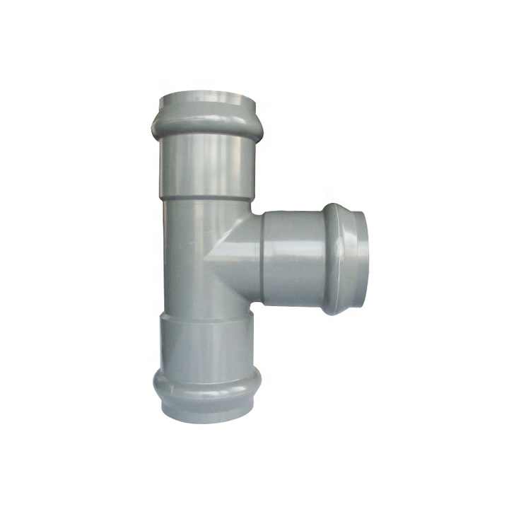 Wholesale ISO1452 Grey Color PN10 Plastic PVC Fitting Equal Tee RRR/FFF With Rubber Ring