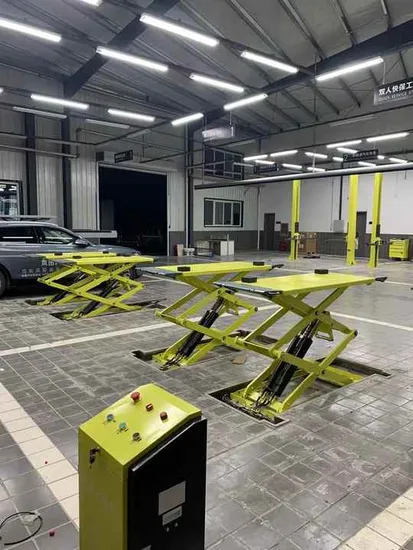 01 Anti slip approach board 02 Total four oil cylinders, Pneumatic 03 scissor arm is made of 25mm solid