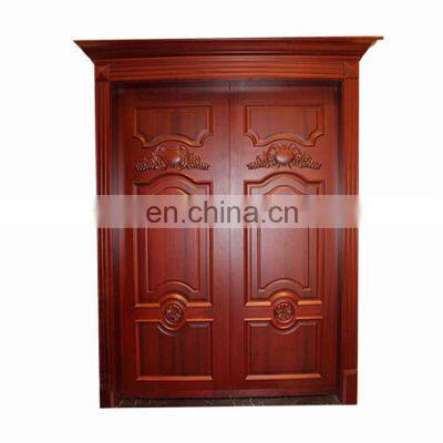 Product NameMahogany Solid wood carved front double door design safe and soundproof entry wood doorsMaterial100% solid wood mahogany ; Wood veneer + 6mm/8mm MDF + Firwood core + Wood veneer.Wood core + Wood VeneerFinishing2 times primer + 3 times color suface paintColorDifferent color available; Free customizedDesignFree customized; OEM acceptable.ArchitraveTwo face both interior and exterior with architrave.GlassArt glass /clear glass /frosted glass etc.Openning DirectionInward or Outward.Lock positionLeft / rightOur wood door features10 years at least wood door production experience; 100% handmaking craft; Deep carved design; Wood pre-treated; Mositure proof &Waterproof; non-cracking & weather resistance; Solidity & Security 1、When is the delivery day?Answer: 45 days after receiving the full payment.2、Can samples be provided before ordering?Answer:Yes,but the samples are not free, we need to charge the double fees than goods,but the fees can be returned to you after place the order.3、How can I know your price?Answer:We do custom as your request,so the price is depend on your specific requirements.It is best to provide the following information to help us quote you accurately.(1)Show us the design, size and quantity you want.(2)Choose the types of wood material that we provide,there is a price for each types of material.(3)Choose the types of internal structure of a door,we can do solid wood door, solid wood composite door,full solid wood door,hollow door.(4)Your other requirements.4、Can I ship all my project item together? Answer:Yes we do offer the customization on door, window and kitchen cabinet. please be free to send us your house plan, we would quote