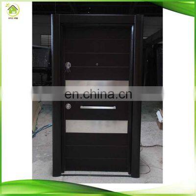 Standard size(height*width): 2050*960/900/860mm or can be customised as required.Thickness of door leaf: 80mm/90mmAdjustable door frame (adjustable wall thickness): 150mm-260mmMore specification:(1) Cold-rolled steel panel + 8mm/1.2 MDF veneer + natural solid wood skin + 6 layers painting(2) Stuffing: honeypaper(3) Thickness of steel panel for door leaf: 0.7 mmThickness of steel panel for door frame: 1.5 mm(4)Door leaf edge lacing: Stainless steel inside lacing(5)Doorsill:no doorsill,Turkey style,just two steel bar.(6)Lock:two lock(lower and bottom lock) turkey style system.(7)peephole: wide angle of 180°with knocker(8)hinges:3pcs visible hinges.(9)Anti-theft Bolt: 3 pcs(10)security buckle:1pc made by steel(11)Door handle:half-moonpush handle,turkey style handles.