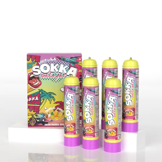 Best Quality Wholesale Selling 640g Custom Branding Sokka Whipped Cream Charger for Sale. 'Official, Certified distributors for Sokka' Sokka cream chargers are tasteless and colourless that have been widely used as a propellant in the food industry. Sokka cream chargers are made of 100% recyclable steel. They are anodized and non-refillable chargers, each of which contains 640 grams. We offer packaging types of 6pcs.