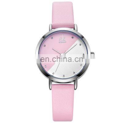 SHENGKE Elegant Lady Watch Two-tone Colors Dial Soft Leather Band Japanese Quartz Movement K8014LFQA:1. What's your best price for this watch?A: We will quote you best price according to your quantity, so when you making an inquiry, please let us know the quantity you want.2. What's your MOQ? Can I mix styles and colors?A: For watch, MOQ is 500pcs/model for OEM & ODM, 300 pc/model of our brand SINOBI. We can mix colors for you, 300pcs/color. Usually we don't accept mix styles. But for the first order, and we see your sincerity to cooperate, we will try to accept 300pcs/style,but the unit price will be higher than the unit price of 500pcs.3. What's the delivery time?A:Delivery time is 25-35 days after confirmed all details and receipt of deposit.4. Can we print our own logo?A: Yes, we can print logo free for you, we can print your logo and design on the band, dial, buckle, back, case and other place, usually the color of the logo is one color.5.What about the warranty?A: We are very confident in our products, and we pack them very well, so usually you will receive your goods in good condition. But to avoid any subsequent trouble regarding quality issue, we suggest that you check the watches once you receive them, and let us know the details if there is any damaged ones, so that we can deal with it accordingly.6.Do you offer Drop shipping (Blind shipping )?Yes , we offer Drop shipping/Blind shipping,we haven enough experience in drop shipping ,every day we have many watches to send out many countries for Drop shipping.7. Do you do custom watch boxes?Yes, we do custom watch boxes. We can follow your requirement to make the boxes ,or you can select our boxes with your logo, we have many different type watch boxes for you selecting.8. What movement do you usually use in your watches?We usually use Japanese movement ,Swiss movement, and Chinese movement, for example Seiko,Citizen,Miyota,Ronda ,Kingstar we use most.9. What kind of materials do you usually use in your watches’ case?We usually use stainless steel and alloy for case, if you have any special requirement, we can according to your requirement for the case.10.What kind of band do you usually use in your watches ? We usually use genuine leather band , stainless steel band,nylon band, mesh band,PU leather band, silicone band ,and so on.11.What is your packaging?For sample packaging: 1.Normal packaging :each watch will be put into a poly bag then packaging well into a small yellow carton2.Gift box packaging: each watch will be put into a gift box then put into a small yellow carton For OEM/ ODM Products packaging:Normal packaging 1.Each piece will be put into a poly bag;2.20 pieces into a white box;3.10 white boxes into a 39*30*33cm carton; Box packaging1.Each watch will be put into a box;2.100 boxes will be put into a carton; Special packaging: As per your request. **Note: Normal packaging service is free.
