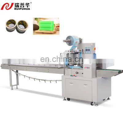 Automatic tape/soap/cleaning sponge/food plastic bag flow wrapping sealing packing machine Product Description ModelZP-500SGPackaging speed(bag/minute)35-300bag/minPacking sizeL80mm-Infinite W30-150mm H5-55mmMaximum width of film(mm)<400mmThickness of film(mm)0.03mm-0.05mmTotal power220V,50/60HZ,6.3KWOverall size(mm)(L)4000*(W)960*(H)1600mmWeight650kgPackage4.0CBM,2CASESOverall size (mm)OPP/CPP, PT/PE, KOP/CPP, ALU-FOIL etc. (1) Menu storage and memory functionThe controller can save a variety of parameter configurations, and the recipe can be used when the product or packaging film is replaced by calling out the formula on the touch screen.(2) Bag length unlimitedThe industry-leading electronic cam algorithm, the bag length range is from 60mm to unlimited length, the bag length is set and cut immediately in one step, saving time and film(3) No product, no bag function/ Anti-cutting functionAdvanced electronic anti-cutting, electronic anti-empty bag algorithm. The empty material film stops, saving packaging materials.(4) 3-Servo motor/PLC controlThe horizontal seal is controlled by an independent servo motor, and the longitudinal seal and the feeding tailstock are controlled by a frequency conversion motor. The mechanical structure is simple, the operation is stable, and the noise is low.(5)High precisionThe feeding speed is automatically tracked, and the packaging machine automatically accelerates and decelerates. High speed, higher precision, double knife speed can reach 300 packs/min, error ±1mm.(6) Man-machine interface, convenient and quick parameter setting, automatic tracking of color code, automatic correction of cutting length. Digitally input the sealing and cutting position to make the sealing and cutting position more accurate.(7) The fault is automatically diagnosed, and the fault display is clear at a glance.(8) Well-known brand servo motor/controller/touch screen, vertical sealing/discharging belt brush.(9) Optional configuration: coding machine, double support paper, automatic film connection, inflation, spray alcohol, lifting panel, stainless steel machine body.Foshan Ruipuhua Machinery Equipment Co., Ltd. was established in 2005 and is located in Nanhai Economic Development Zone, Foshan City, Guangdong Province. It is a professional intelligent assembly line equipment manufacturer integrating design, manufacturing, installation and technical services. The leading products include food packaging machines, packing lines,and high-speed mask production lines. Our products are mainly used in food, medicine, daily chemical, hardware, toys and other industries. It is an equipment supplier to many well-known food companies at home and abroad, such as Taoli, Panpan, Ma Dajie, Xu Fuji, Orion, Jin Longyu, Tongyi, etc. Our products cover 34 provinces and municipalities across the country and are exported to more than 100 countries, and have provided automatic feeding and packaging solutions for more than 4,000 customers. pacRuipuihua has obtained nearly 100 national patents and a number of software copyrights. All products have passed the EUR CE certification and 1S09001 quality system certification, and the industry segment market share ranks among the top three in the country. In recent years, it has successively won "National High-tech Enterprise", "National Hidden Champion", "Industry Leading Enterprise", "China Manufacturing Singles Champion Enterprise", "National High-tech Zone Leading Enterprise", "Foshan Quality Award First-line Team Award", "Gazelle Enterprise" and other honorary titles. From 2019 to 2020, our company has successively been approved to establish the "Food Processing Machinery Standards Working Group", "Food Packaging Machinery Standards Working Group" and "Small Bag Integrated Bagging Machinery Standards Working Group", and served as the leader unit to lead the drafting of industry standards . Ruipuhua is moving towards the formulation of industry standards, national standards and international standards. Why choose us?1. Manuals / Videos of machine installation, adjusting, setting, maintenance are available for you. 2. If any problems happened and you can not find out the solutions, online face to face communication available 24 hours.3. Ruipuhua engineers & technician are available send to your countries for services if you agree pay the expenditure.4. One year guaranty for machine. During the warranty if any of the parts broken not by man-made. We will free charge to replace the new one to you.5. Ruipuhua has an independent team for after-sale service. Any emergency please call the salesman or our after-sale's manager. Company Honor-National high-tech enterprise;---2016-National invisible champion of Nanhai manufacturing;----2017-Reported by CCTV (China Central Television) Financial Channel;----2018-Won the honoraty tiles of "Leader in the industry", "Single Champion","Transitional Special New", "Brand Enterprise", "Technological Enterprise", "Government Quality Award", "Foshan Engineering Technology Research Center"... ...----2018-Guangdong province market quality credit A-level customer satisfactgion enterprise. ----2019 ... ...