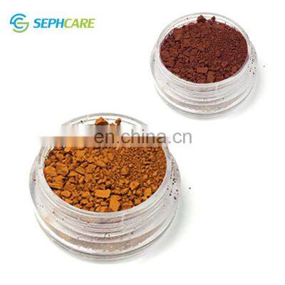Product DescriptionSephcare pharmaceutical grade iron oxide pigmentsItem NameIron oxideColorRed, yellow, brown, black.AppearanceFine powderMolar mass159.69 g·mol⻹Solubility in waterInsolubleGradePharmaceutical grade Melting point1566 °CApplicationChemicals, biochemicals, antibiotics, radiopharmaceuticals, pharmaceutical excipients, cosmetics etcSampleAvailablePaymentWestern Union/TT/PayPalShippingFedex, By Air, By Sea.Detailed ImagesOur CompanyOur ServiceTo support all the demanding customers, we are going to focus on value addition in order to satisfy the needs of all our customers. The valued-added service spans:1.Special Packings 2.Own Brand Labeled 3.Product Images Support 4.Formulation Guideline Support,etcPacking & DeliveryAll freights are determined based on the weight of the item and the destination. 1.1kg with double plastic container inside/Aluminum foil bag outside. 25kg with double plastic container inside/Fiber drum outside or it is at your option.2.Dispatch goods Usually via DHL and FEDEX, but other kind of shipping ways can be negotiated.3.Delivery Time: 7 days after payment.FAQQ1: How can I place order?A: You can send inquiry to us or start a chat online with me first.Q2: Do you provide samples?A: Yes. Sample pack can be send to you, please tell us your usages, also need your shipping address and post code.Q3:How can I pay for you?A: We accept Online bank payment,T/T and Western Union and Trade Assurance. Before you pay, please contact us for payment details.Q4: Can you do OEM for me?A: Yes, we are good at OEM order, just provide us what you want and we can give the best design.