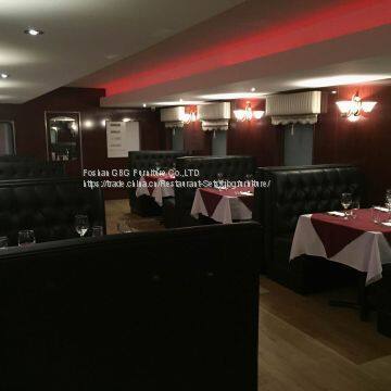 2:Restaurant Booth in black vinyl leather and buttons on the backrest.