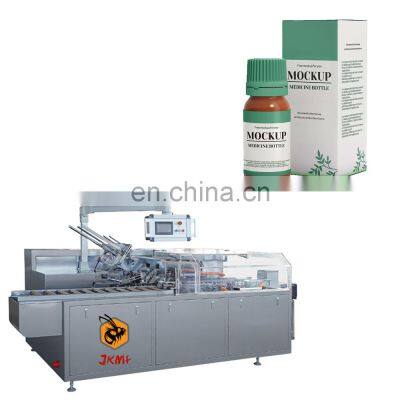 JKMF Automatic Carton Box Packing Machine Cartoning Machine Products DescriptionJKMF automatic cartoning machine can achieve full automatic products conveying & feeding, flat carton feeding, carton opening, products pushing, carton folding, carton closing, finished carton package discharging.Machine InformationAutomatic Box Cartoning Machine is a hot sale product developed and manufactured by our company. It is applied to a variety of foods, toys, cosmetics, electronics and daily necessities. Box packing machineJK-Box sizeL:65~350 mmW:30~350 mmH:15~180 mmWrapping speed40~70 box/minGas source0.5~0.8 MpaMachine weight1300KGMachine power220V, 50HZLarge capacity storage box rackWith the long boxes' feeding shelf design, you can place up to 2000 pcs boxes, the machine will alarm and stop automatically whenthe boxes are going to running out.Sensor Identify the product The box storage shelf will stop to feed boxes once there is no products get detected on the conveyor, which will prevent from the box wasting.Automatic feeding device Pneumatic manipulator can fill materials accurately and at a high speed.Adjustable sealing device With the convenient adjustment design, you can easily to complete the adjustment for the different sizes boxes in 1 min.Why Choose UsJIKE BEE MACHINERY has a professional team to provide customers with various packaging solutions. Fully understanding the needs of customers,engineers design the most suitable solution. We have our own processing and assembly workshop and quality inspection and debugging process to ensure the quality of the machine. After acceptance by the customer, they are packed in international standard wooden cases and shipped.Our technical team has carefully filmed more than 100 installation and commissioning videos of various accessories and complete machines, providing video training guarantee services for the equipment permanently.We will package the machine's instruction manual and a USB flash drive with machine operation videos together with the machine.Ensure that you can use the machine as soon as you receive it. If you have something you don't understand, our after-sales team will also help you answer in time.We package and ship the machines in accordance with export requirements.1.Bottom fixed, avoiding shaking and damaging.2.Wrap whole machine in transparent film.3.Packed by fumigated wooden case, meeting export standard.Company ProfileFoshan Jike Bee Automation Equipment Co., Ltd. is a manufacturer of automatic packaging equipment.We are a production-oriented enterprises focused on product innovation, factory direct sales and perfect after-sales service in one.The automatic packaging equipment for granule, powder, liquid and sauce produced by the Jason company is at the advanced level of the industry,it can be customized production automatic material packaging line for all kinds of products .Mainly applicable to: food, hardware, drugs, daily chemicals, pesticides, fruits and vegetables, cosmetics, other industries.The company has its own patent and product technical certification, which can bring customers high quality equipment and worthy of customer trust.Customer PhotosOur customers have covered more than 80 countries around the world.And give us unanimous praise.CertificationsFAQQ1:Do you have manual or operation video for us to know more about the machine? Yes, not only manual or operation video, 3D drawing also available to make as per your design,also the video we can make of testing the material from our packaging machine if your packing goods easier for us to find from our local market. Q2:How can I trust you for the first time business ?Please note our above business license and certificate. And if you don't trust us, then we can use Alibaba trade assurance service, guarantee your money, and guarantee your machine's on-time delivery and machine quality.Q3:Is engineer available to serve oversea?Yes, but the travel fee is paid by you. So actually to save your cost, we will send you a video of full details machine installation and assist you till the end.Q4:How can we make sure about the machine quality after we put the order?Before delivery, we will send you the pictures and videos for you to check the quality, and also you can arrange for quality checking by yourself or by your contacts in China.Q5:Will you provides the door to door service?Yes. Please offer us your final destination, we will check with our agent to see if it available, and most of the area is ok for us to clearing and sending in your countries.