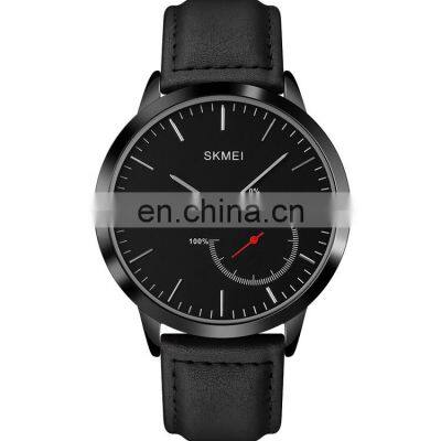 OEM custom logo men wristwatch brand Skmei 1510 japan movement waterproof genuine black leather quartz watch