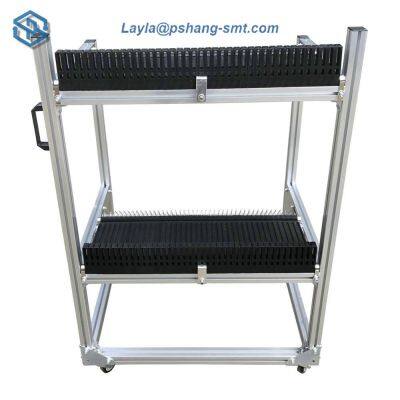 1. The feeder storage cart gives your operators a secure place to put unused feeders between set-ups minimizing failures due to improper storage or handling.2. When its time to prepare for the next job, the same carts can be used to “pre-kit” the placement systems tape feeder load in positive latching feeder locations using the same numbering system as used on your placement machine.3. When its time to change over to the next job, the cart is moved to the correct placement system, existing feeders on the assembler are moved to an unused shelf on the cart and the “prekitted” feeder set move from the numbered slots on the cart to the same number slot on the machine.