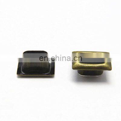 Product Description THE METAL SQUARE EYELET BASIC INFORMATIONItemEco Friendly Square Shoe Eyelets For FootwearMaterialBrass & Iron ColorAntique Brass,As your request Size11.5x6x8mm,As your requestMOQ5000pcsLogo N/M or upon your requestTechnologyPainting ,Plating Sample Free if in the stock,but freight paid by the buyerPayment 1. T/T, Paypal for small order2. 30% down payments,70% before delivery for bulk order DELIVERY TIMESample About 3 days Mass Productions 7-15 working days after confirming order OUR ADVANTAGESPrice Direct factory price Quality The most excellent quality with over 15 years reliable and experienced manufacturer Production1,Eco-friendly, Nickle&Lead free,we have BV certification2,Won't change color and rust3,Design the productions as you like,ODM and OEM are welcomeLead TimeShort time (7-15days)After-Sale Service Provide “7 × 24h” service More Product Style Note:All of our products can be customized . You can choose the sizes, materials,shapes, colors,logos what you want .Before quote you the price,we will be appreciated if you can provide the information below: 1.Material & Size2.Color & Quality3.Quanlity4.Product image (you like) If possible ,pls provide the above information to us ,if you are not clearly, we will give you the best advice according to your requirement. Correct Measurement : Application Area Machine Show: Buyer Feedback Company Information