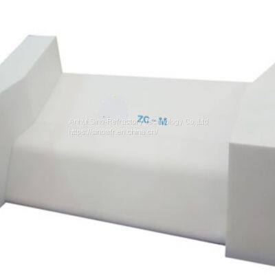 Fused cast α-βalumina block consists of 50% αalumina and 50% βalumina.The interlaced crystal structure creates a sense structure inside the block, which is characterized by its excellent resistance to alkali. Under the temperature of 1350℃,its corrosion resistance to glass melt is equal to AZS. In contact with the glass melt, the products will barely create bubbles or other foreign matters to contaminate the glass melt due to its characters of containing rare impurities of Fe2O3, TiO2 and vitreous phase matrix.So it is the most suitable material for the side wall, paving, channel and feeder of high grade glass furnace.