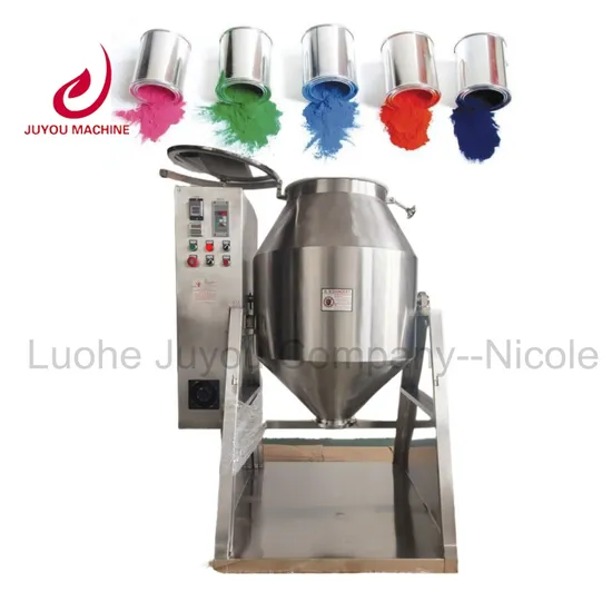 Product Description Dry powder mixer has simple structure and convenient operation.The dry powder blending machine is a portable mixer with a drum shape. Its mixing tank has a unique structure, and the inner wall is smooth and has no dead corners, so the mixing is uniform, the efficiency is high, and no accumulation. The appearance and material contact parts are made of high-quality 304 stainless steel, with beautiful appearance, convenient maintenance and easy cleaning.