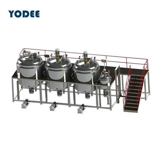 YD-MT-6: Combined mixing tank with multiple main pots, in super-large industrial production, multiple mixing pots share the same platform, so it can be more convenient in feeding and equipment cleaning and maintenance, and can be equipped with a fully automated intelligent operating system. Homogenization, heating and other functions, the platform can be equipped with anti-skid, waterproof and other functions, in the early stage of equipped with material hoist, the entire industrial production can be completed on the platform, or a PC-side remote control system can be used, which can reach the workshop to the greatest extent. Unmanned and intelligent.