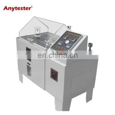 ApplicationHYYW-90 Sale Spray Tester is used to determine the resistance to deterioration from salt mist of specimens of similar construction. It is used for evaluating the quality and the uniformity of materials surfaces. This machine conforms to ISO 9227, ASTM B117, DIN 50021, GB/T 2423.17, GB/T 2423.18, etc.FeaturesTest Chamber1.Chamber is made of light grey PVC sheet in 5mm thickness 2.Chamber cover adopts transparent acrylic sheet, 5mm thick, high temperature resistant 3.Air saturator is made of SUS#304 stainless steel, with high pressure resistance and good heat preservation effect4. With two-layer specimen support, can randomly adjust the placing angle and height of specimens (the specimen support can be customized according to customers’ requirementHeating & Spraying System1.Adopts U-shaped alloy heating tube, fast to heat, with resistance to acid and alkali corrosion, long service life2.Use tower type atomizer, the height can be adjusted 3.Special quartz glass nozzle, the spray angle and quantity of fog can be adjusted 4.Spray mode: continuous and intermittent selectable 5.Timing range: 0~9999h6.Large salt solution reservoir to support 72h continuous spraying while no needing of adding salt solution 7.Automatic or manual water supply system selectable, 8.With defrost systemSpecificationModelHYYW60HYYW90HYYW120HYYW160HYYW200Inner dim. (mm)60×45×4090×60×50120×85×50160×100×50200×100×60External dim.(mm)110×67×118141×91×122200×115×145240×135×145280×135×155Test chamber volume108L270L600L680L800LSalt water tank volume15L25L40L40L60LMaterial Thickness5mm6mm8mm8mm10mmTest chamber temp.RT+5℃~50℃Fog quantity1~2ml/h.80cm2Temp. fluctuation≤±0.5℃Spray towerIndependent designed acrylic conical disperser, can adjust the flow of the spray, and can make the fog uniformSpray nozzlePYREX glass precision nozzleSpraying modeContinuous and intermittent spray selectableTiming range 0-9999.9hInterval time0~99.9 hPower supplyAC220V, 50Hz