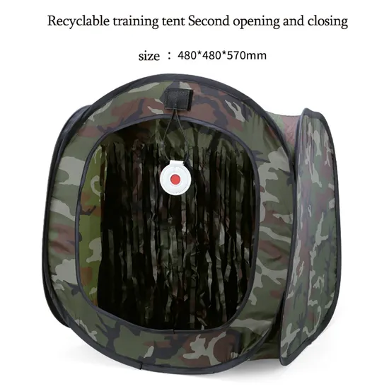 Product Description Pop Up Hunting Blind can be folded and packed in a small bag. Easy to carry and you can enjoy your shooting anywhere. The double net Doghouse Ground Blind fabric can reduce the noise and prevent disturbing the others. Portable hunting blind Use the nylon clasp to hang the target quickly and firmly. There are 4 nylon clasp on the top of the hunting box blinds for hanging the tent and practicing shooting any time and anywhere. Weather Resistant tent is Great for leisure activities, exercising eyesight and reaction, relaxing your eyes, keeping hand-eye coordination. Detailed Photos