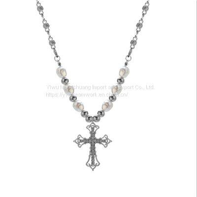 Women's Pendant Necklaces Pearl and Rhinestone Cross Necklace- Dreamwork fashion jewelry accessories