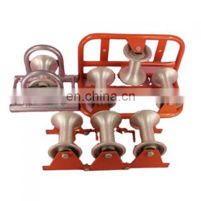 Product DescriptionCorner cable/wire drawing pulley manhole triple cable guide aluminium nylon bridge type cable roller Cable rollers, also named as cable pullers, are widely used for cable laying and cable pulling in utility and electricity supply industry. There are many kinds of types, including straight cable rollers, corner cable rollers, triple cable rollers and specialist cable rollers for pulling underground cables into trenches. The wheel material can be aluminum, iron, nylon and highquality nylon. And the frame can be cold zinc galvanized or powder coated.Power and communication cables are often laid in open trenches where the road and ground conditions result in the cable route having a number of curves. With the cable’s own weight and the high tensions involved the cable cannot be fed cleanly. The ground cable rollers and corner cable rollers from LANYU are made of aluminium, steel or plastic. The sturdy and robust steel frames are completely galvanized and guarantee a long working life even under extreme conditions.Straight cable runs are pulled in using straight cable rollers suitably placed in the cable trench to prevent the cable being dragged on the trench bottom or in mud - cable roller spacing is dependent on cable type being laid and the cable pulling tension along the route. Leading cable rollers are used to support the cable over the entire drum width immediately before being pulled into the trench.Triple Corner Cable Roller are available with powder coated finish and using two vertical and one horizontal steel roller. Our Triple Corner Cable Rollers are identical to CRS1 for taking the heaviest cables round difficult corners. Triple Corner Cable Rollers have the robust construction for use in the most arduous conditions and can be linked together with stake pins provided to form a continuous corner Roller system. The standard Triple Corner Cable Roller utility and cable laying contractor for pulling in low and high voltage electric cables.Product SpecificationNameCable rollerMaterialIron, aluminium, nylon, high quality nylonColorSilver, golden, yellow, red, green, orange, blue, or can be customizedFinishCold zinc galvanized, or powder coatedWeight3kg ~ 12kgSampleAvailableCustomizationAcceptedProduct Classification * Ground Cable Roller, aluminium Abrasion resistant aluminium rollers, galvanized steel tube frame dust- and soil proof ball bearings, large ground clearance * Ground Cable Roller, steel Abrasion resistant steel rollers, galvanized steel tube frame dust- and soil proof ball bearings, large ground clearance * Ground Cable Roller, synthetic Non-aging and weatherproof, extreme light weight, highly shock-resistant stackable, large ground clearance, for cables up to Ø 100 mmProduct Feature1. Able to carry high loads2. With chromel stell ball bearing3. With a high load-bearing capacity4. Self-lubrication, precision machined and low friction5. Low noise, stable performance and durable6. Able to work in sub-zero temperatures and have low rolling resistance7. Suitable for countless applications: sliding pipe, machine equipment and other sliding systemsProduct Application* For delivery of underground cables, used in extended release cable for high- speed single round of linear wheel bearings are not to hurt the cable wheel material steel aluminum cattle dragon can be based on your need to select. * The cable pulley can be installed on a different cable. * Pulley material classification: a steel pulley with spherical bearings, the second nylon wheel with plain bearings, aluminum alloy wheel with sliding bearings.Package and TransportationUsually the cable rollers are packed with carton box. Or it can be customized as customer's request. About usCable roller/pulley, including ground cable rollers and corner cable rollers from Lanyu are made of aluminium, steel or nylon. They can be customized as your demands. The sturdy and robust steel frames are completely galvanized and guarantee a long working life even under extreme conditions.Lanyu have been supplying products with high quality and excellent service to meet your requirement, until now we have cooperated with countless retailer, OEM, traders from a long time. Welcome to come and talk with us. We hope to establish long time cooperation with our excellent service.FAQ1. Do you accept OEM service? Yes, we provide OEM service as customer's request, including the color, the dimension, Logo, etc. 2. What is the delivery time? It depends on the order. Usually it takes about 20 ~ 30 days. 3. Can you provide discount? Yes, the price is negotiable. According to the order quantity, we provide discount 0.1% - 3%. 4. Can I get a sample before mass order? Yes, and the sample is free. 5. What is your payment term? We accept T/T, LC, Western Union, Paypal.Welcome to contact us for more detailed information!