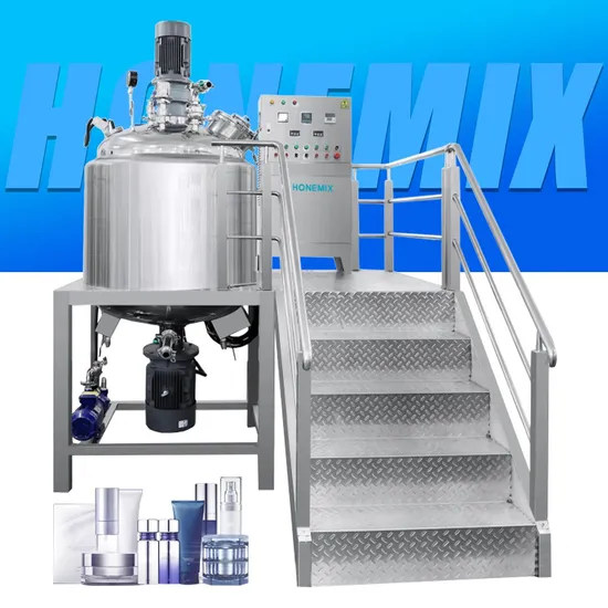 Vacuum Emulsifying Mixer consists of main pot, water/ oil tank, HMI control system, homogenizer, mixing system, heating & cooling system, vacuum system.