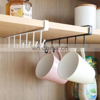 Hot Sale Kitchen Iron Hanging Mug Cabinet Shelf Storage Rack Nail Free Coffee Tea Cup Holder Organizer With 6 Hooks