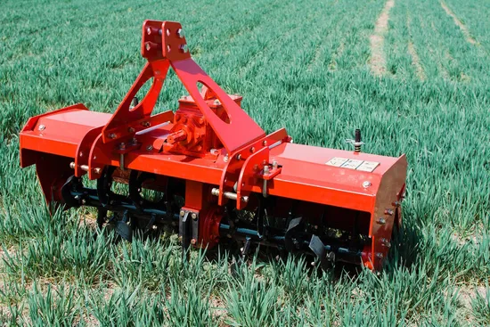 Rotary tiller is a plowing machine that is matched with tractor to complete plowing and harrowing operations. It has strong ability to break up the soil, and one operation can make the soil broken up, the soil and fertilizer mixed evenly, and the ground leveled, so as to meet the requirements of dryland sowing or paddy planting, which is conducive to striving for the farm time, improving the work efficiency, and making full use of the power of the tractor. It has the functions of breaking the subsoil layer, restoring the structure of soil tillage, improving the ability of soil water retention and moisture preservation, eliminating part of weeds, reducing pests and diseases, leveling the ground surface, and improving the standard of agricultural mechanized operation.