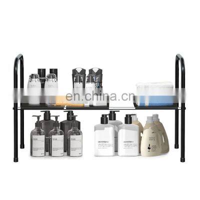 Under Sink Kitchen Rack Expandable Cabinet Shelf Organizer Rack with Removable Panels for Kitchen Bathroom Storage 2-Tier