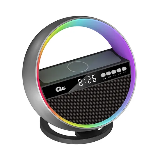 Support Wireless Charging USB TF Card RGB Light Alarm Small Mini Round FM Radio Portable Phone Speaker Product Description