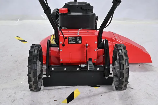 This machine is a gasoline-powered lawn mower for the rougher work. Ideal for areas where the grass is long and where the surface is not completely level.