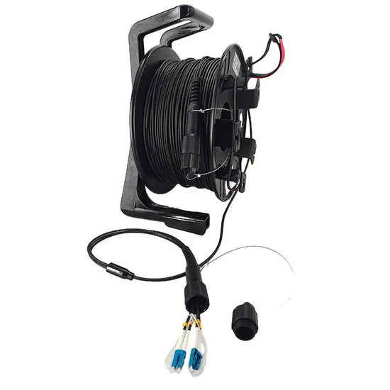 Product Description The mobile per-terminated armoured cable reel is developed for temporary field deployment where fiber connections are required. It comes in a portable cable reel for ease of transportation and deployment. The armoured cable is flexible and is able to withstand multiple usages without kinks. One end of the cable is fixed to the reel while the other end is coiled freely for patching to the equipments. Generally these will be customized base on user's requirement so there are options of various cable and connector type with any cable length which then will determine the size of the reel.