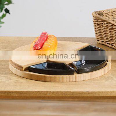 Products DescriptionProduct ParamentersNameCreative Design Nordic Style Bread Round Bamboo Cheese Cutting Board SetColorBambooMaterial100% Natural BambooSize 330x330x45mmPackingBrown box and shrinkPortXiaMen,FuZhouPaymentL/C,T/T,Alibaba trade assurance,Western UnionDescription1.Made of durable natural bamboo known to be environmentally friendly, stronger and more beautiful than regular wood.2.Ideal for serving breakfast, dinner, wine, or just anything else, or use for an elegant decoration display.3.Elegant sides with wide handles for easy grip. Surrounding tray lips prevent items from falling over.4.Hand wash with mild soap warm water, for extended life of tray use bamboo oil occasionally.Pelative ProductsFactory introductionProduct packagingFAQ