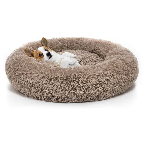Factory new luxury comfort fluffy brown cozy calming pet beds cushion nest round donut pet bed anti anxiety for dog cat