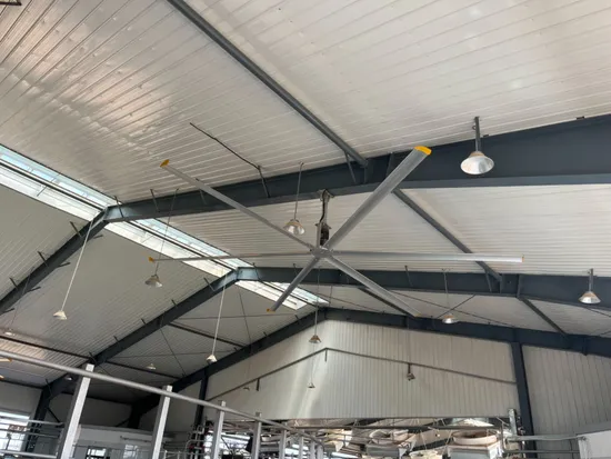 Comfortable and smooth space: The large ceiling fan with a 6-blade design delivers intermittent airflow that is more similar to natural wind, resulting in higher comfort. The super large ceiling fan hanging on the roof provides a more spacious working area.
