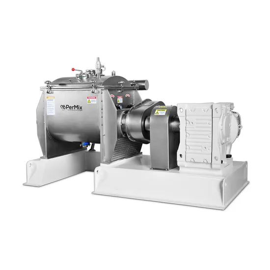 PerMix PSG series Sigma Mixer, which is also known as the Double Sigma Mixer, or Double Z Blade Mixer, is used for the mixing-kneading of materials with very high viscosity (over 500,000 cps). If a screw extruder is applied for discharging, the mixer is also called Sigma Mixer Extruder, or Mixtruder.