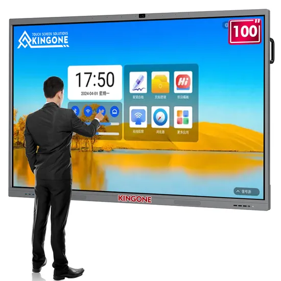 KINGONE touch screen smart whiteboard creating an impressive, multi-use digital screen display. The 4K Ultra HD display delivers incredible image quality with four times higher resolution than Full HD. Optimised for viewing distances both near and far the display allows your content to take center stage for all your visual communication. These screens are interactive and feature 20 touch points which means you can collaborate with your team around the screen and 20 users can be interacting with the screen at any one time. Alongside the touch function, the screen also features a whiteboard which comes with a smart pen stylus. Write directly onto the screen and save your annotations to your computer seamlessly. Touch Screen Smart Board is an interactive TV, it built-in with LCD/LED and touch screen (and PC for optional). We use the most popular technology infrared touch to achieve interaction between users and the monitor. All in one touch monitor is also a LCD whiteboard, use the LCD to instead of the projector for image presentation. Connect with built-in or outer PC, it is a large touch PC, fingers to control and operate the PC to present advertisement, conference PPT, classroom courses, play movies and etc…