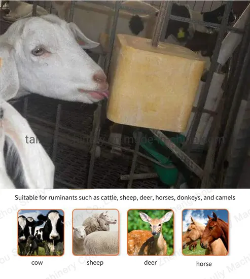 The salt licking briquetting machine is a device that scientifically formulates the mineral elements, vitamins and other trace elements and nutrients required by large livestock such as cattle and sheep, and then processes them into blocks, cakes and other special shapes by the salt licking briquetting machine. . The compressed block is a kind of feed for cattle and sheep to lick. It has different shapes, some are cylindrical, some are rectangular or square. It is also called block compound additive, usually referred to as "licking block" or "licking block". Brick".