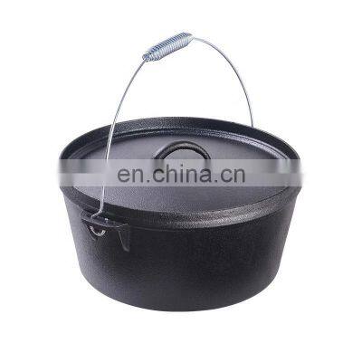 Product DescriptionCast Iron Dutch OvenMaterialCast iron Size25*25*15cm35*30*5cmVolume4-12QT3.5LUnit weight5kgLogocast logoPackageColor box packing + outer boxDetails ImagesCamping Dutch oven side viewThe pan and lid can be used separately.The lid can be used for frying and baking food.Double dutch oven can meet all your cookingneeds.Cast iron materialseasoned all surfaceThe loop handleThe loop handles make the grip feel more comfortable,it's easy to operate.14 inch dutch oven camp chef outdoor camp ovenPremium cookware and natural cooking method for your healthy life!* Especially for use at home in the stovetop or outdoor camp cooking* Heavy duty cast iron dutch oven is resistant to chipping and warping* High corrosion resistant and anti-rust performance* Vegetable oil coating is non-toxic and easy to clean * 4.5QT capacity provide a large and excellent cooking area* It designed to withstand high temperatures up to 350°C(662°F) * Permit heat to penetrate evenly from around* Keep your food warm for longer after removing from the heat source* Wire bail handle with spiral grip allows you to cook by hang it directly over campfires * Dutch oven with tight-fitting lid cooks food quickly and maintains its moisture * Bonus lid lifter to take the lid or oven body up easily to prevent scaldRecommended for:Multi cooking method: stewing, braising, frying, sauteingCan be used in gas stovetops, open fire, grill, charcoal cookingSpecificationMaterial: Cast IronCapacity: 4.5QTOverall Dimension: 25x15cmWeight: 5.5KGInternal Dimension: 24x9cmPackage Includes1 x Dutch Oven Pot1 x Lid Lifter1 x InstructionPacking & DeliverlyRelated ProductsCertificationsFactory IntroductionShowroomStorage CapacityProduction ProcessManufacturing Technique