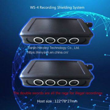 First of all, thank you for reading the system profile. WS-4 recording shielding system is a new type of recording shielding system developed by our R&D team in combination with our existing products and customer needs. It consists of two sets of mainframes, each with four signal transmitting terminals and stepless power adjustment knobs. The two sets of mainframes are simultaneously opened and arranged around the illegal recorders to achieve recording shielding.