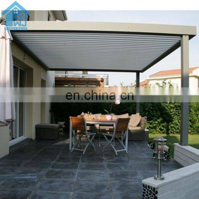 Product NameModern design bioclimatic motorized aluminium louvered pergola Materials Details1,Post: aluminum alloy 6063 T5 2,Blades : aluminum alloy 6005 T5 3,Beams: aluminum alloy 6063 T5 4,Gutter :100x100x2mm colors can be customizedControl wayMotorized/ManualFunctionWaterproof ,sunshade,windproof ,snowproof, house space extendingApplicationVilla,balcony ,garden ,backyard ,roof ,restaurant,decking ,swimming pool and so onWind Resistant180-220 KM/HSnow Loading60-100cmSizePopular standard size:3x3x2.5、4x3x2.5、5x3x2.5、6x3x2.5 or can be customizedOther related materialsSide screen/curtains, side shutter ,LED lights,heater ,fans,glass doors,outdoor furnitureInstallationWe will provide very detailed drawing and video for the installationOthers1.MOQ:1 set, we welcome small order 2.Production: we are factory , we can provide 10-15days fast production time 3.Warrenty:10 years 4.Color:White, Grey, Black, or customized colors availableFAQQ1. Is this aluminium louvered pergola easy to install?A: We have the assembly manual instruction specifically made according to your project site. It's a DIY product designed to be easily assembled and we can provide installation video.Q2. How long is your products' warranty?A: All our products have 10 years warranty.Q3:How to guarantee the quality of the products?A:We have our own QC team to control the products quality for all our clients'orders before loading.Q4. How can i get a price of needed aluminium louvered pergola?A: Please give the exactly size and quantity of your required aluminium louvered pergola. We can give you a detail quotation and free design solution based on your requirements.Q5.I am a small wholesaler, do you accept small order?A: It's no problem is you are a small wholesaler, we would like to grow up with you together and our MOQ is 1 set.Q6. Is my first time to export from China, what if i have no experience?A: Don t worry, we have very professional sale will guide for and we can provide one stop solution including deliver the door to your home address with customs.Q7. What kind of payment terms would you accept?A: We usually accept T/T, L/C, Western Union, etc. If you prefer other payments terms, please feel free to discuss with us.Q8. What if i meet the problem after installing and using this aluminium louvered pergola?A: As our principle is our business had been built on hoes & backed by customer service.we are verified supplier in Alibaba. com and our can provide 10 years warranty, so if you meet any problem for using thisaluminium louvered pergola,welcome to contact.