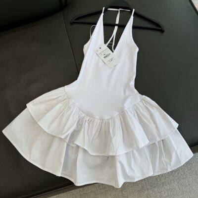 Spring new women's clothing pullover, neck hanging collar, sleeveless layered short dress for women