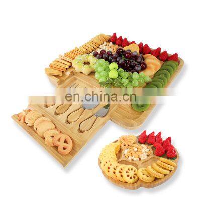 Unique Bamboo Cheese Board Charcuterie Platter Serving Tray With 4 Stainless Steel Knife
